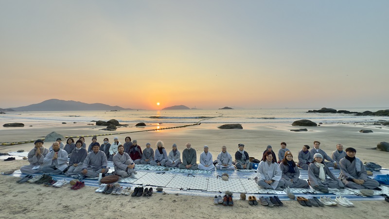 Looking back, these were days of spiritual abundance: from group practice in the quiet meditation hall, to having meals with the four bowls in the dining hall; from morning practice at dawn on the beach, to leaving a stamp on the mountain trails with every step. With the passing of each day and night, students practiced diligently, attaining the pureness of becoming one with the universe.
