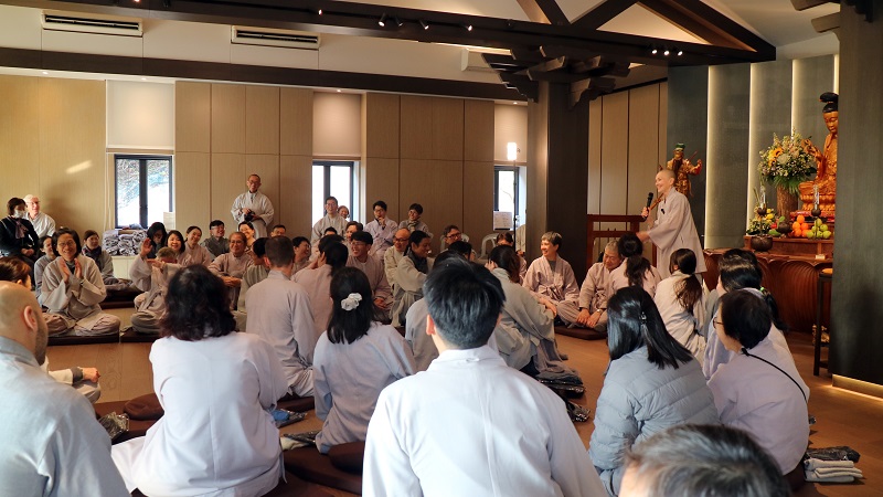 After lunch, our sunims and students from the Ukraine, Russia, the US, France, Singapore, Malaysia, Macao and Hong Kong gathered to share the joy they experienced during the Kyol Che. The day ended with words of encouragement and reminders from Zen Master Dae Kwan and Bon Sun Sunim JDPS: the key to practice lies in the cultivation of virtue and the making of a clear vow. With these, we can transform delusions and karma into nutrients for growth.