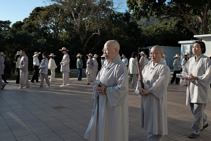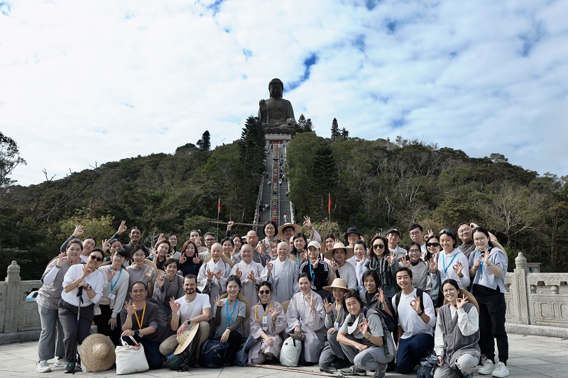 The next day, accompanied by the sunshine and the gentle breeze, the group journeyed along the Luk Wu Ancient Trail to Ngong Ping, and chanted the Heart Sutra in front of the Big Buddha.